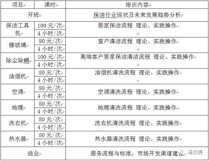 根據(jù)目前家政保潔市場(chǎng)需求及社會(huì)人員就業(yè)需要,經(jīng)公司研究決定,烏蘭美將推出家電清洗保潔培訓(xùn)班。通過(guò)家電清洗保潔培訓(xùn)班提高從業(yè)人員行業(yè)的操作專(zhuān)業(yè)水準(zhǔn),更好的為我市市民提供優(yōu)質(zhì)的服務(wù)。